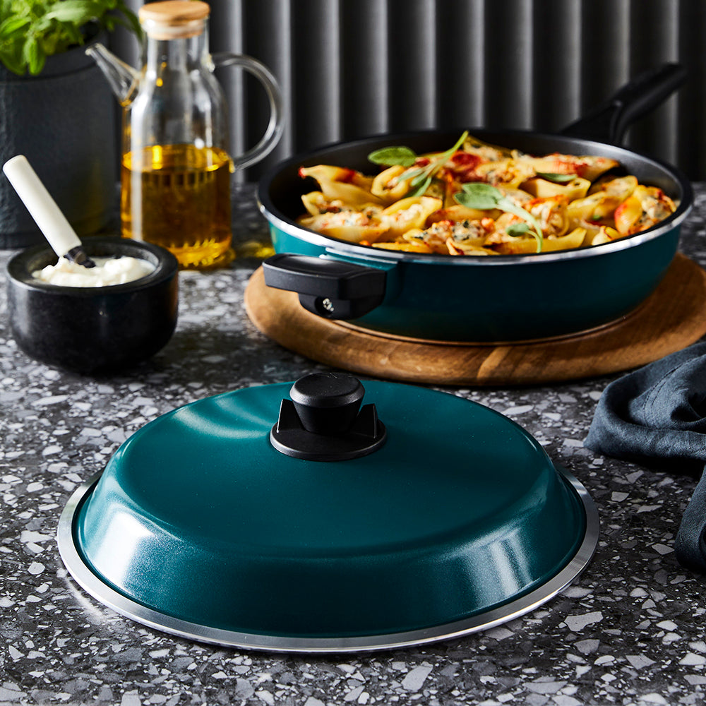 Featuring a modern high dome design with integrated steam ventilation, the Bessemer Universal Lid provides perfect control over your cooking. Crafted from the highest quality food grade materials, with European ceramic coating to ensure unparalleled non-stick, the Bessemer Universal Lid is truly made to last. Fitted with a stay-cool Bakelite knob, oven safe up to 180°C, that allows for safe handling, the Bessemer Universal Lid is PFOA Free, and Lead and Cadmium Free for peace of mind.
